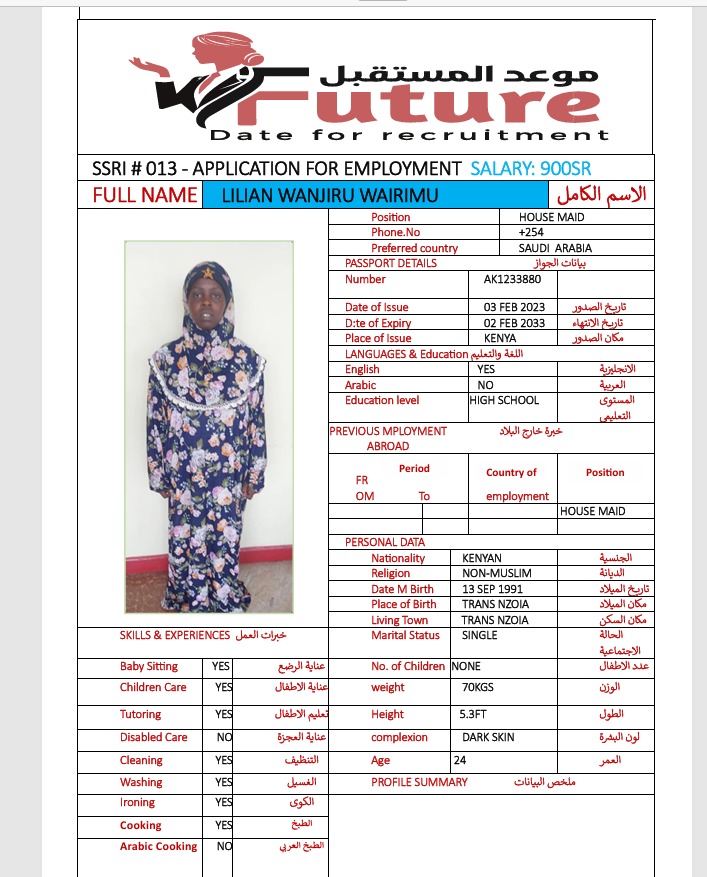 خبرات ومهارات عمالة منزلية من كينيا