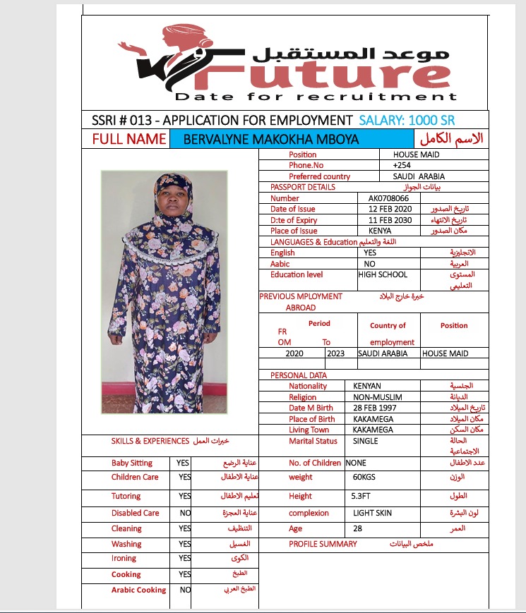 مكتب موعد المستقبل أفضل مكتب استقدام عمالة منزلية في جدة يوفر خدمات استقدام عمالة من كينيا ويلتزم بجميع الإجراءات القانونية وفق لوائح مساند. تشمل خدماتنا: