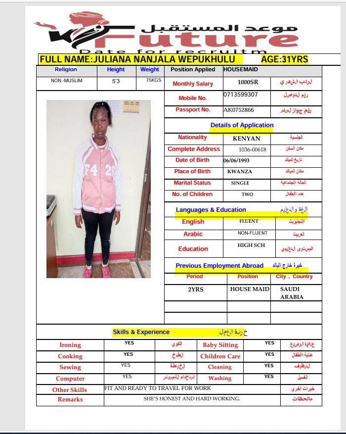 اختر مكتب موعد المستقبل بجدة لضمان استقدام عمالة منزلية من كينيا او طلب الاستقدام من الفلبين وغيرهم بكفاءة واحترافية وترخيص من منصة مساند، مع الالتزام التام بالإجراءات القانونية وتقديم الدعم الكامل قبل وبعد الوصول خبرتنا و مصداقيتنا تجعل تجربة الاستقدام سلسة، موثوقة، ومرضية لجميع عملائنا، تواصل معنا الآن.