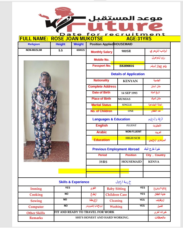 مكتب موعد المستقبل في جدة يقدم لك خدمات استقدام عمالة منزلية من كينيا بسرعة وبطريقة موثوقة مع الإلتزام بجميع الإجراءات القانونية وفق لوائح مساند، تواصل الحين مع مكتب الاستقدام موعد المستقبل أفضل مكتب استقدام عمالة في جدة لمساعدتك على إيجاد المساعد المثالي لمنزل نظيف وبيئة مريحة طوال اليوم.