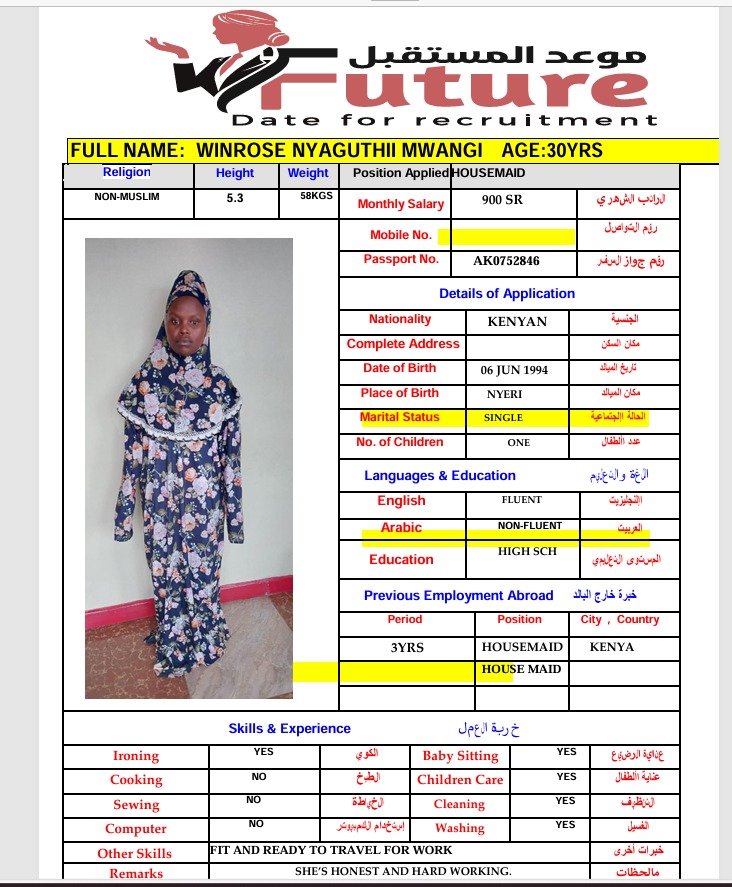 نوفر لك في مكتب موعد المستقبل في جدة خدمات استقدام عمالة منزلية محترفة من كينيا بسرعة وبطريقة معتمدة، مع الإلتزام بجميع الإجراءات القانونية وفق لوائح مساند. يُمكنك التواصل الحين مع مكتب الاستقدام موعد المستقبل أفضل مكتب استقدام عمالة في جدة لمساعدتك على إيجاد المساعد المثالي لمنزل نظيف وبيئة مريحة طوال اليوم.