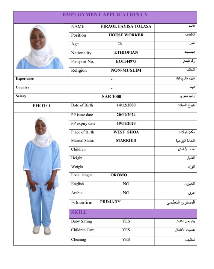 FIRAOL FAYISA TOLASA – EQ1144975