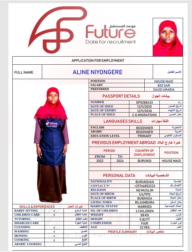 استقدام OP0288433 عاملة من بوروندي