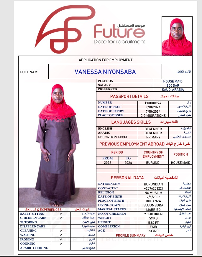 استقدام عاملة من بوروندي