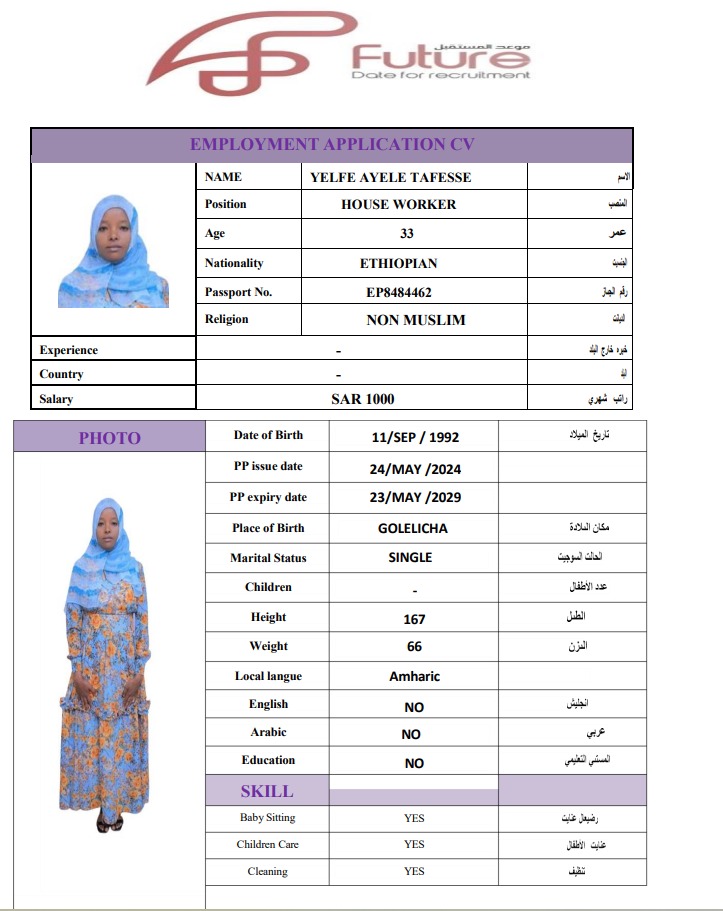 استقدام العمالة من إثيوبيا YELFE AYELE EP8484462